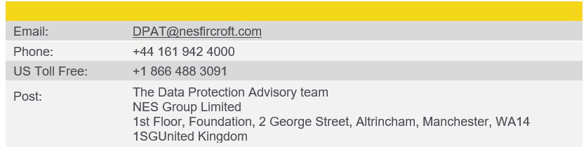 If you wish to make a complaint you can do this by contacting the NES Fircroft Data Protection Advisory Team (here).